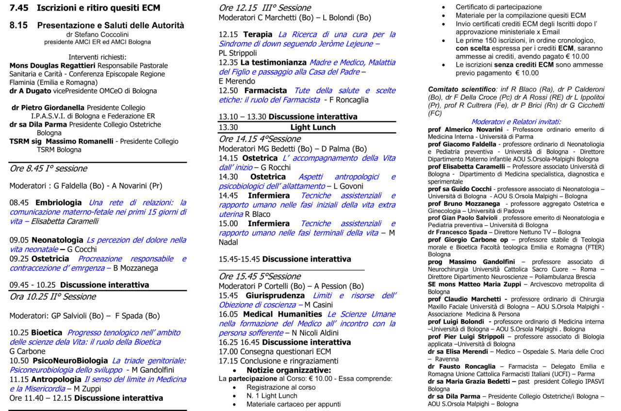 L’Associazione Medici Cattolici Italiani (A.M.C.I.) – Sezione di Bologna ed Emilia e Romagna ha organizzato per il giorno 8 Ottobre 2016, presso l’Aula Magna di Villa Revedin (Piazzale Bacchelli n. 4 Bologna) un convegno dal titolo: “Un nuovo umanesimo: la Scienza al servizio dell’uomo”.