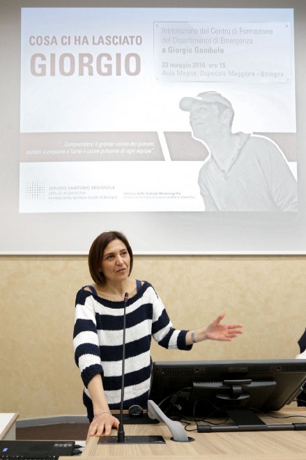 L’intitolazione del Centro di Formazione del Dipartimento di Emergenza dell’Azienda Usl di Bologna, tra i primi in Italia per attività e qualità dei corsi, ha avuto luogo oggi all’Ospedale Maggiore nel corso di un incontro pubblico. La figura di Giorgio Gambale è stata ricordata, alla presenza della moglie, Maria Teresa Montella, per l’Azienda USL di Bologna da Chiara Gibertoni, Direttore generale, Giovanni Gordini, Direttore del Dipartimento di Emergenza, Carlo Coniglio, Responsabile della Rianimazione Emergenza dell’Ospedale Maggiore, Antonella Caselli, Infermiera della Rianimazione, e poi ancora da Guido Bertolini, Responsabile per l’Istituto Mario Negri del Gruppo Italiano per la Valutazione degli Interventi in Terapia Intensiva e da Vanni Agnoletti, Direttore di Anestesia e Rianimazione dell’Ospedale Bufalini di Cesena.