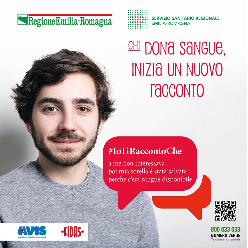 Ci sono mille buoni motivi per donare sangue, e a spiegarli sono e sarannoloro, i donatori, protagonisti della nuova campagna di comunicazione diRegione Emilia-Romagna, Avis e Fidas: #IoTiRaccontoChe. Utilizzando questo hastag, ovvero l’etichetta che sui social network funge da aggregatore tematico, chi dona potrà raccontare, e socializzare, la propria esperienza, per far sì che un gesto prezioso diventi anche contagioso. E potrà far sentire la propria voce anche chi il sangue lo riceve: storie che rimangono spesso nell’ombra e che rappresentano il senso della donazione. Perché il sangue è un bene prezioso che a volte viene dato per scontato, ma scontato non è.