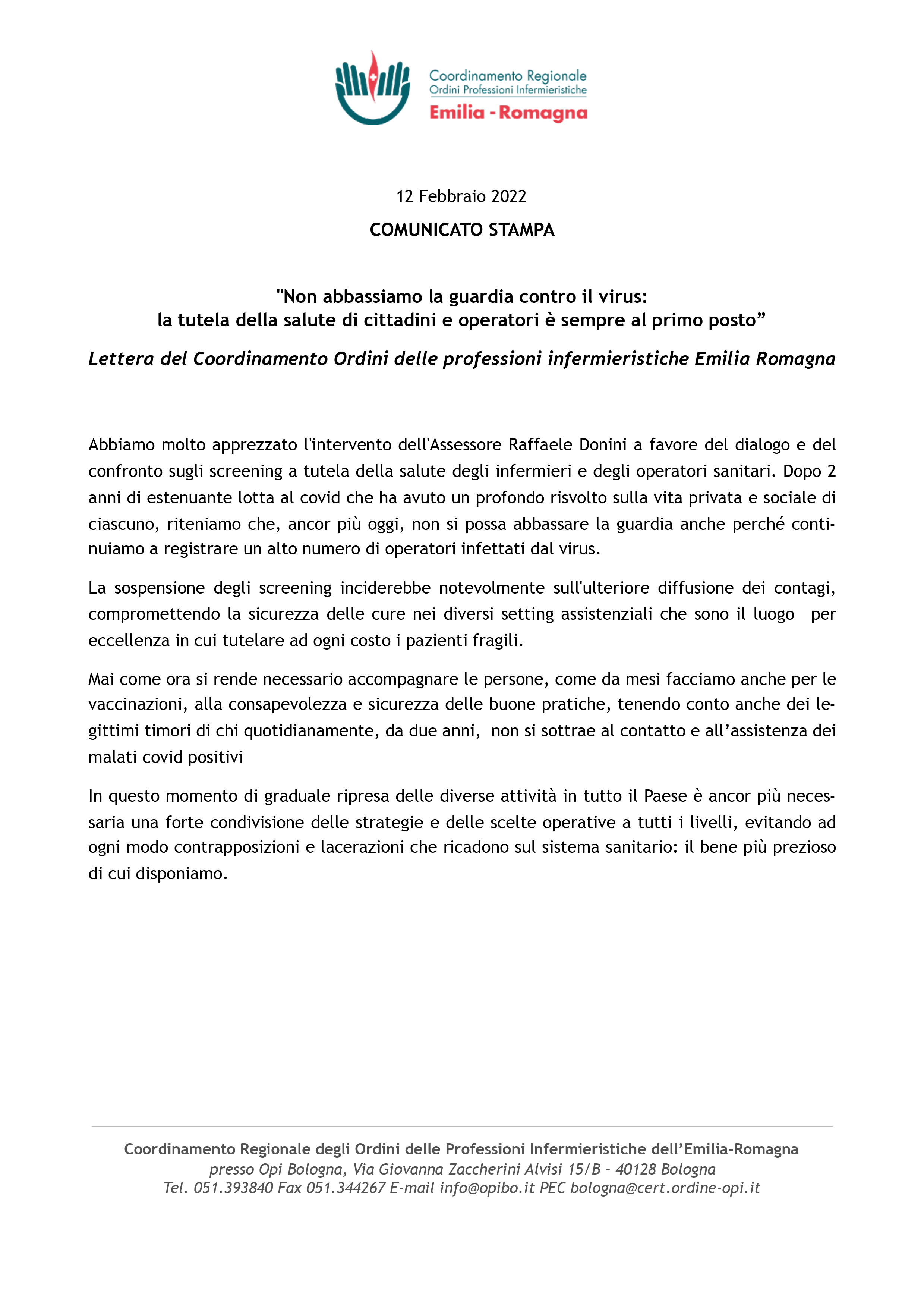 Lettera del Coordinamento Ordini delle professioni infermieristiche Emilia Romagna