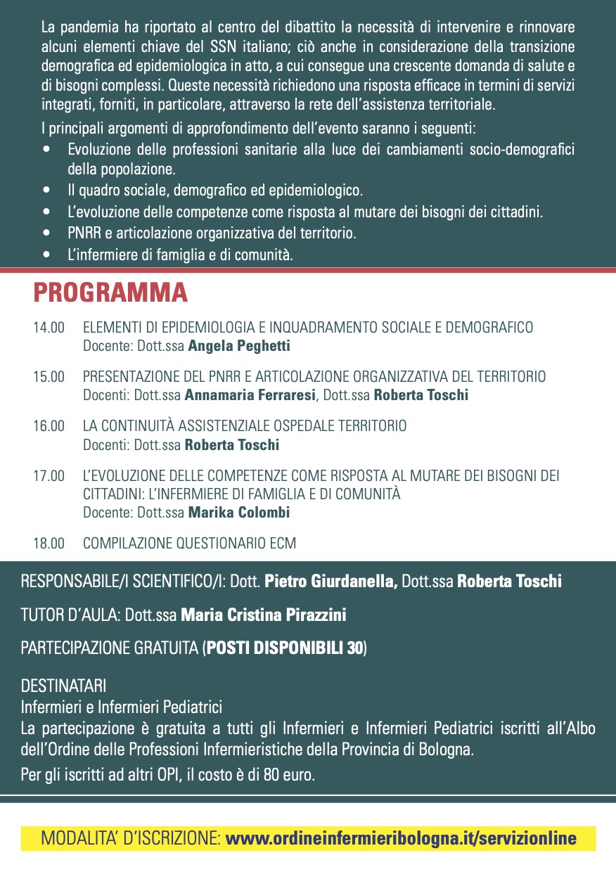 Per le iscrizioni, si rimanda all’area riservata del sito OPI Bologna