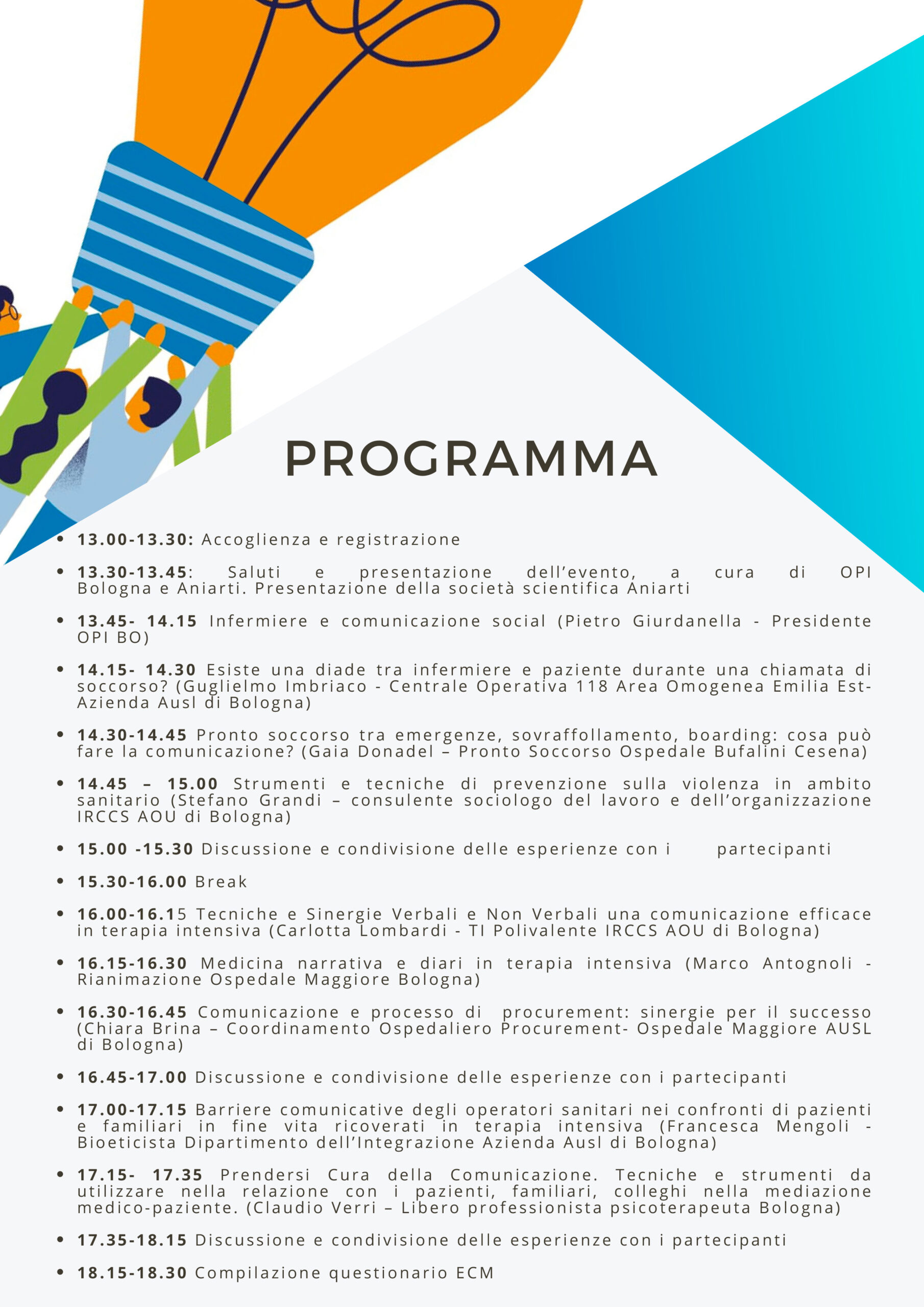 Congresso organizzato da ANIARTI in collaborazione con l’Ordine delle Professioni Infermieristiche di Bologna “ComuniCARE: Strumenti di mediazione comunicativa in area critica