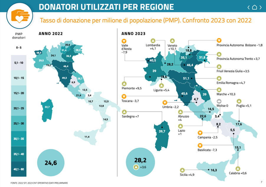 L’Italia, stando al report analitico del Centro Nazionale Trapianti del 2023, è al 2° posto in Europa con un tasso di 28,2 donatori per milione di abitanti, dietro alla Spagna ma davanti a Francia e Regno Unito.